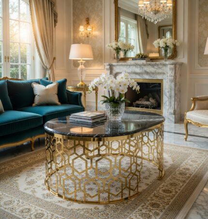Royal Black Marble Gold Honeycomb Center Table