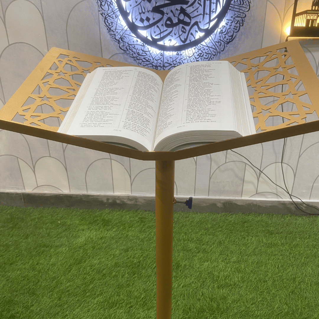 Combining modern utility with Islamic tradition, the Adjustable Rihal al Huda offers flexibility for every reader. Whether seated on the floor or table, this foldable Quran stand adjusts to your comfort while holding the holy book securely.