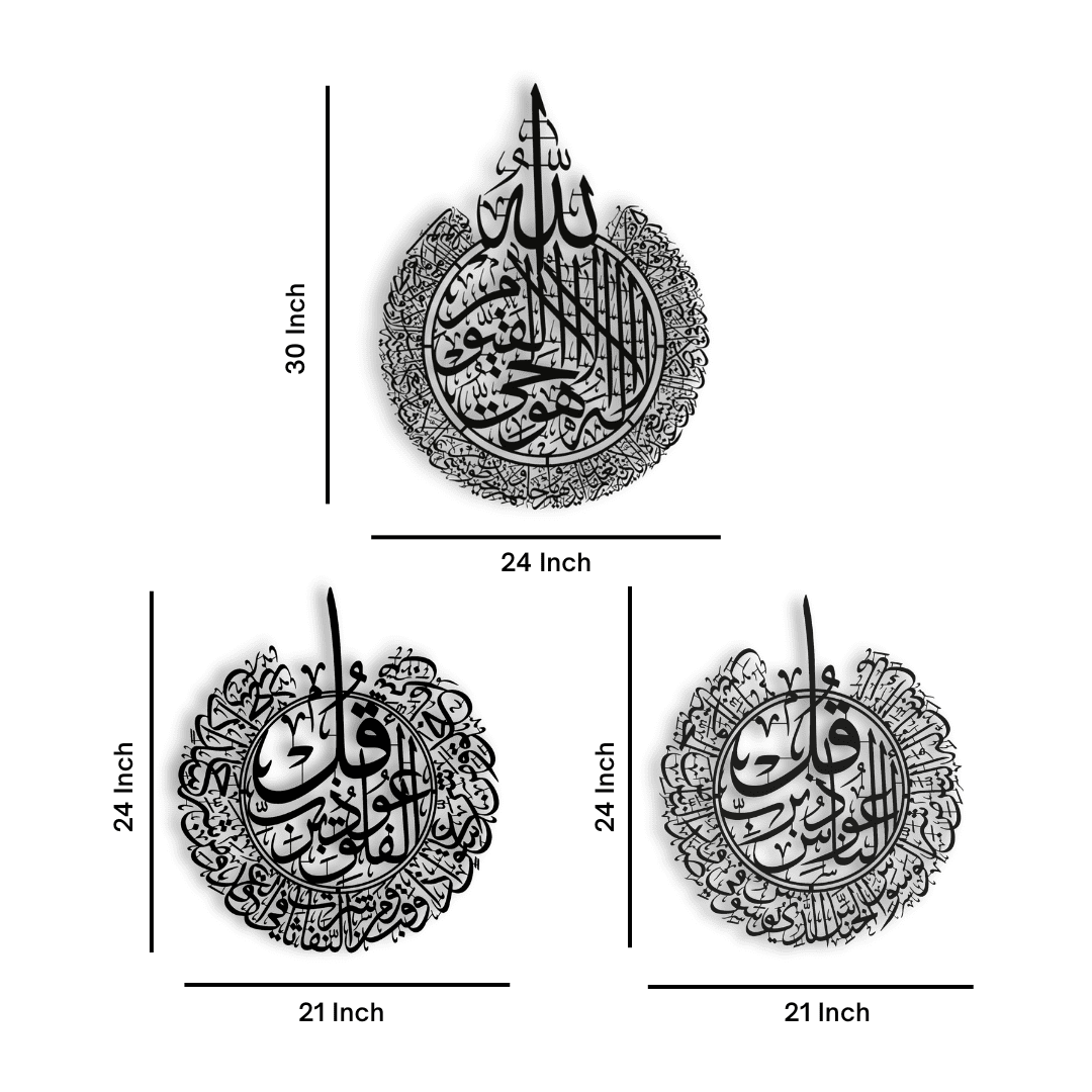 Introduce timeless elegance and powerful protection to your walls with Al-Amn collection – The Set of Peace & Safety. This beautifully crafted metal art set includes Ayatul Kursi, Surah Naas, and Surah Falaq, verses known for their strong spiritual protection in Islam. Perfect for living rooms, prayer spaces, or as a thoughtful gift, these pieces are designed to bring calm, security, and divine blessings to your home.