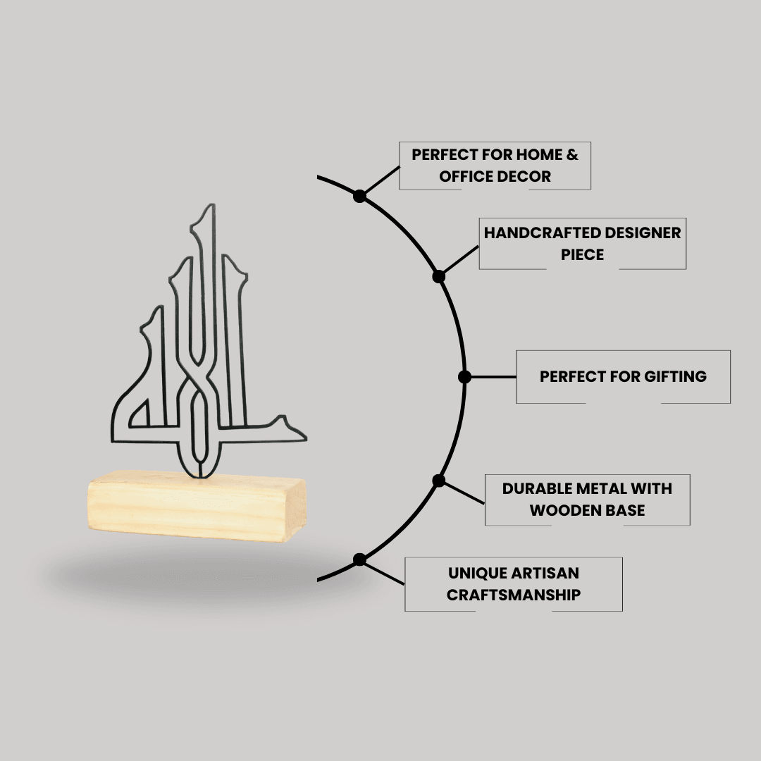 Discover tranquility through simplicity with the Allah Outline Table Art. Its clean and modern silhouette represents faith in a subtle, yet visually graceful form. Crafted with attention to detail, this table art radiates peaceful energy and timeless beauty.