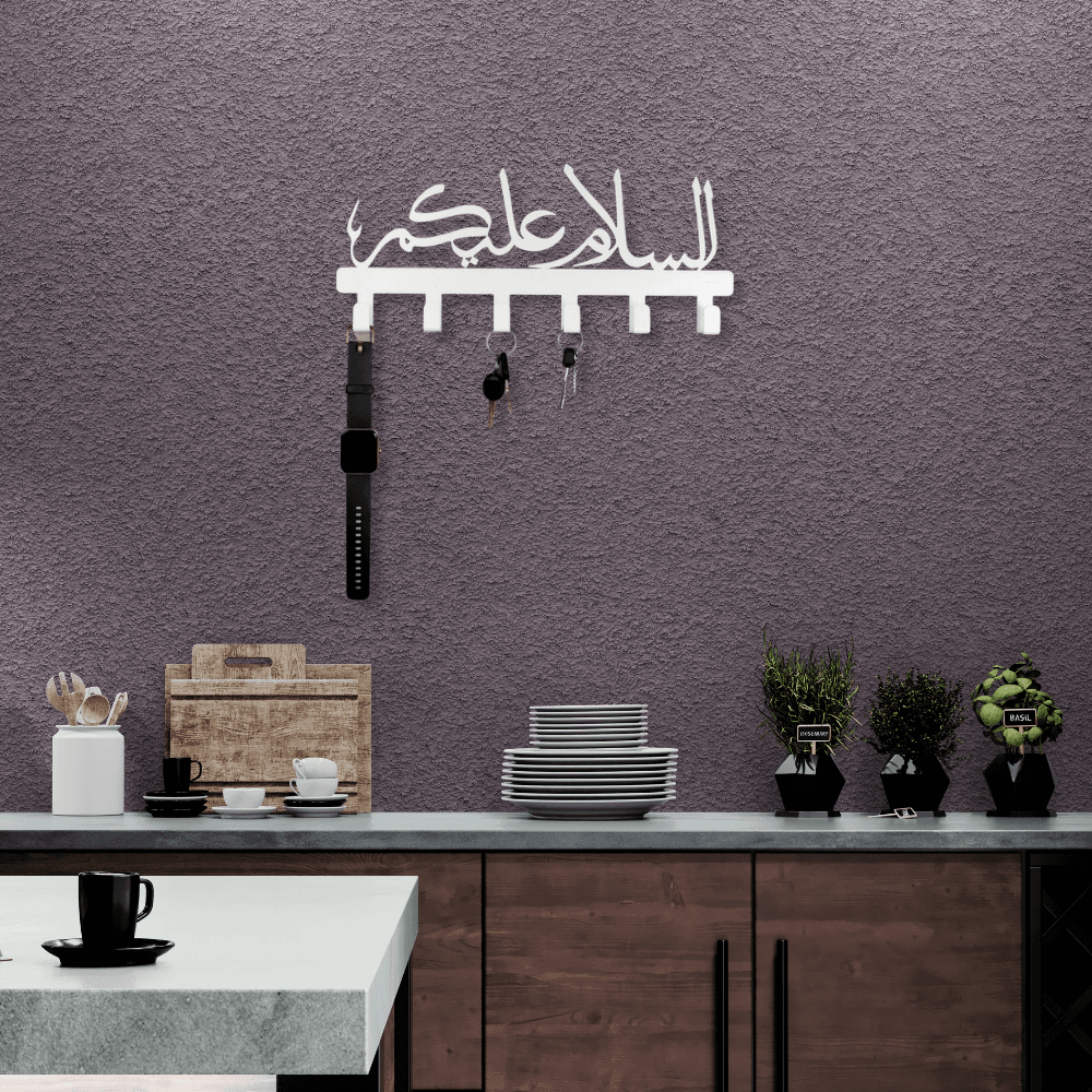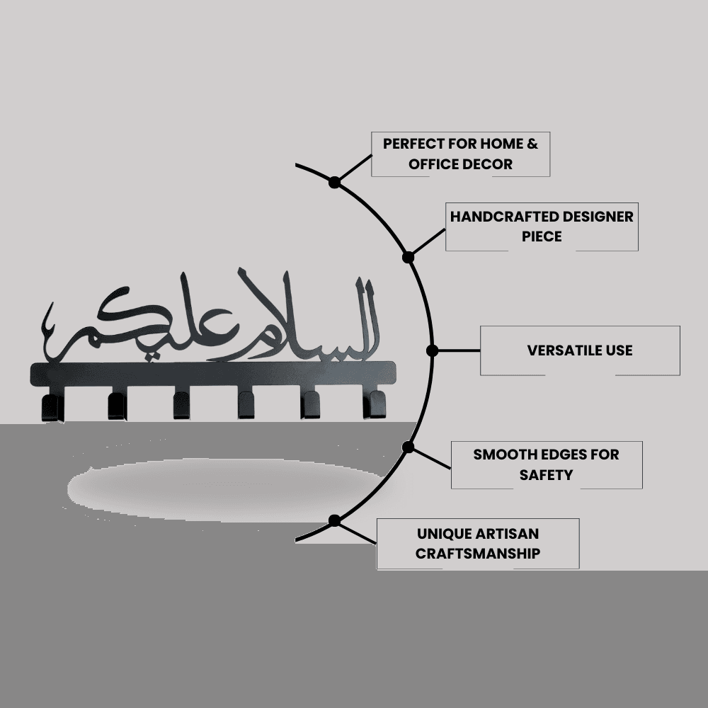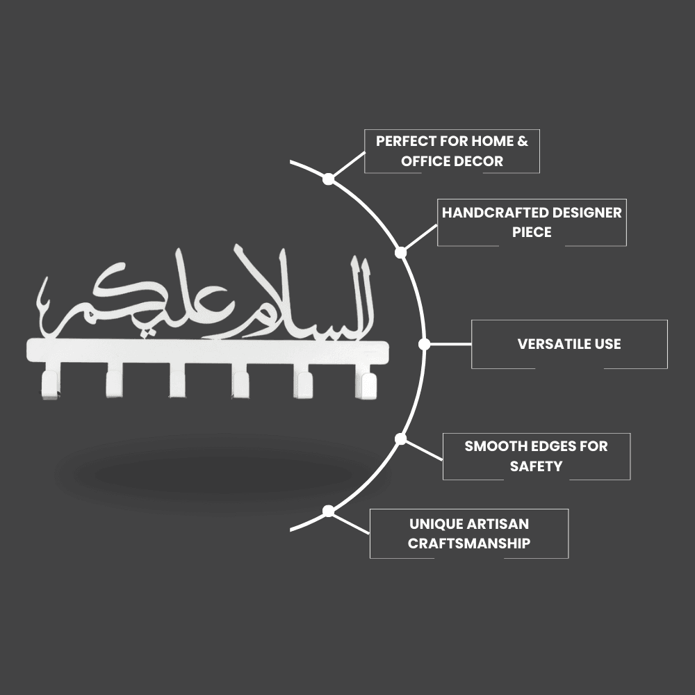 • Warm Greeting Design: The Assalamualaikum Key Hanger welcomes guests with a message of peace and warmth, ideal for adding an inviting touch to your entryway or living room.