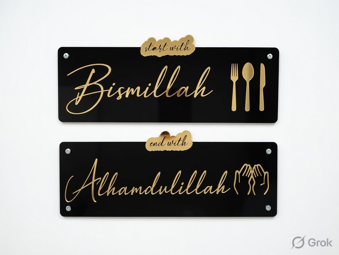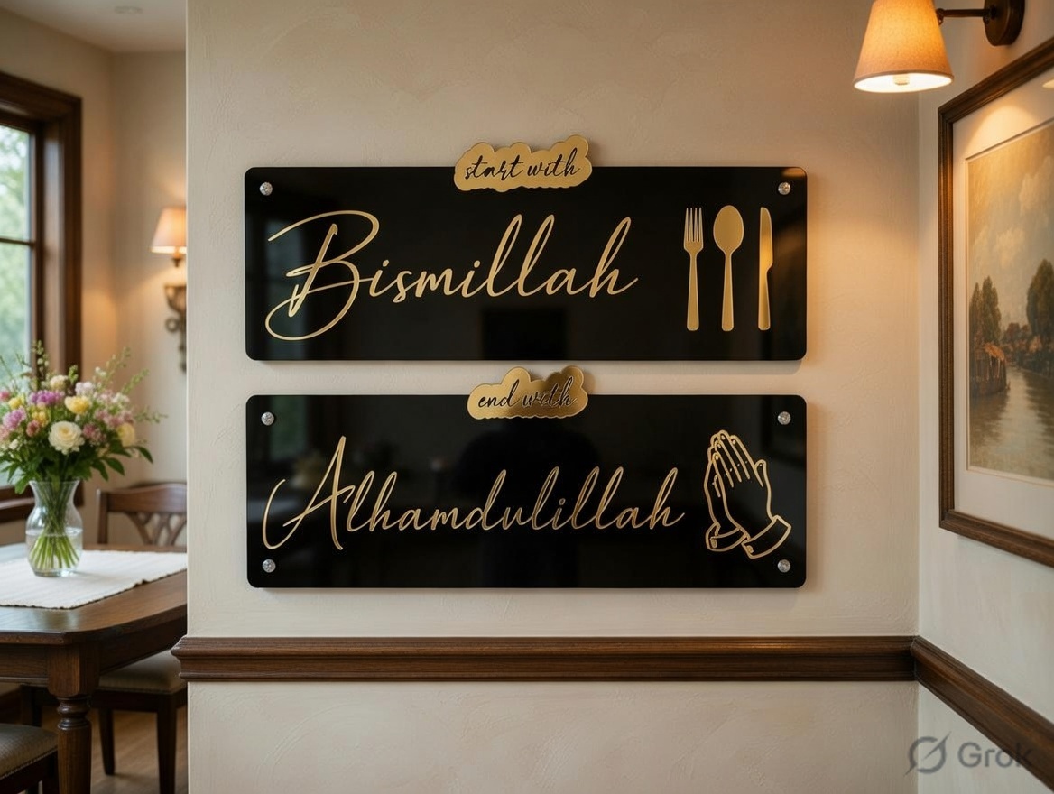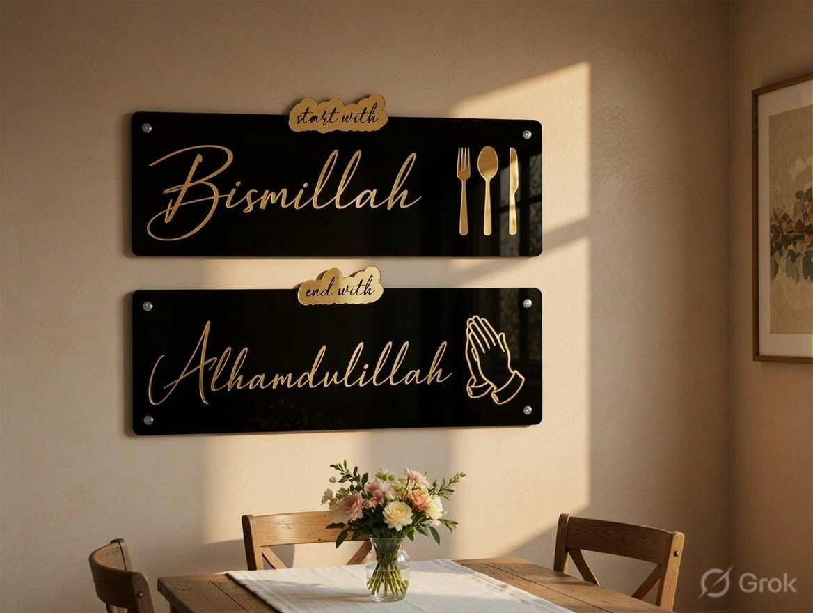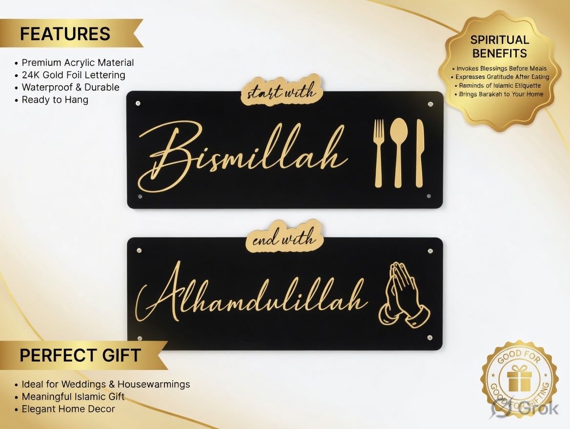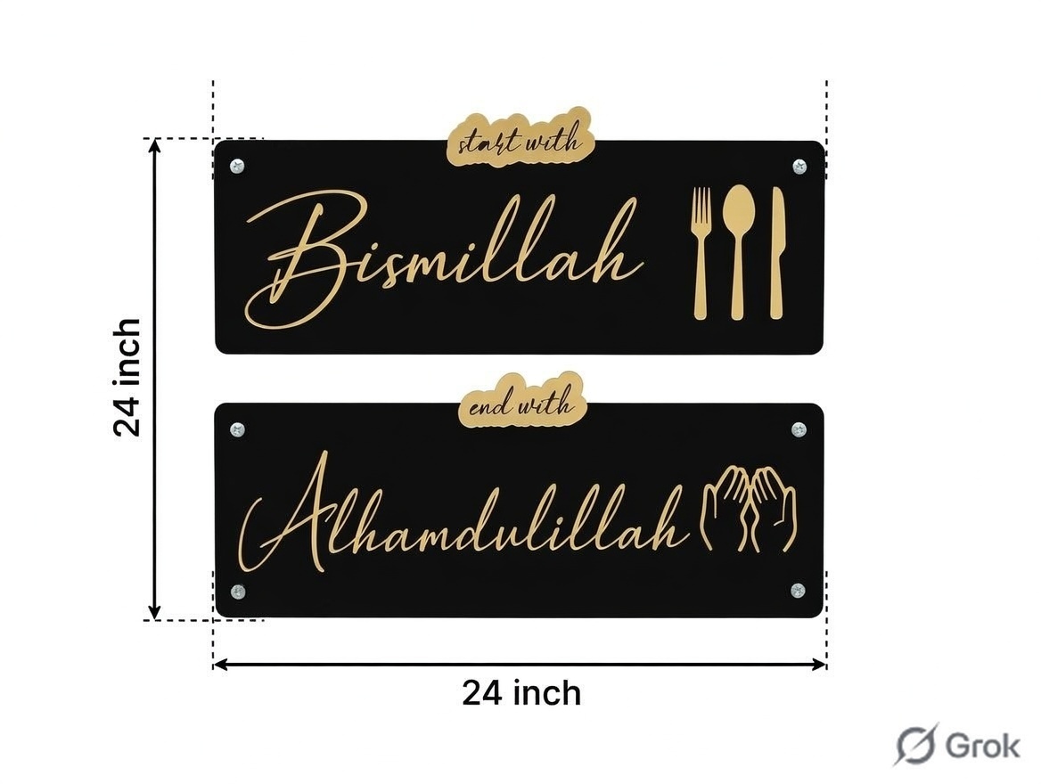 “Start with Bismillah and End with Alhamdulillah” acrylic wall art is a meaningful and elegant décor piece that beautifully reflects the essence of a mindful and grateful life. Crafted with a modern aesthetic and Islamic calligraphy, it serves as a daily reminder to begin every action in the name of Allah and conclude with gratitude. Perfect for homes, offices, or prayer spaces, this artwork adds both spiritual depth and visual appeal to any environment.