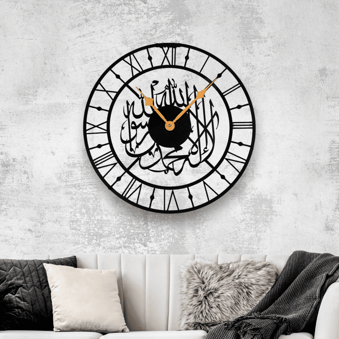 Unite tradition and timeless style with the Kalima Romantime, a graceful fusion of Islamic art and Roman numeral elegance. This clock blends sacred Arabic inscriptions with a classic Roman face, symbolizing unity, heritage, and wisdom. Perfect for creating a spiritual yet stylish atmosphere, it’s ideal for homes that appreciate both culture and refinement. With its elegant detailing and meaningful design, the Kalima Roman Clock offers both visual harmony and emot