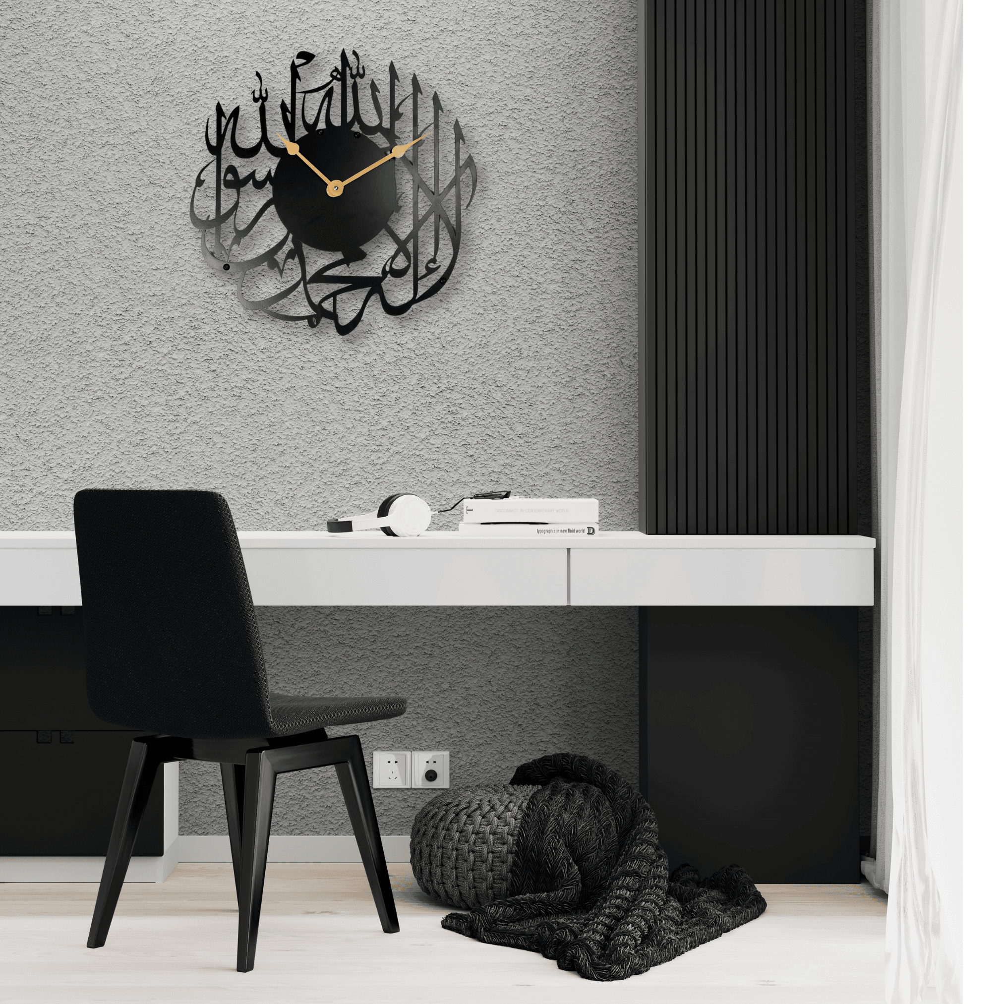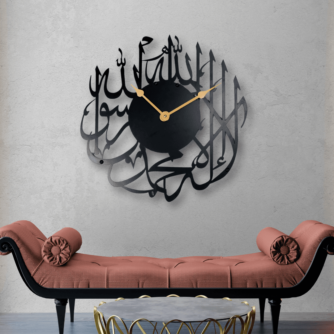 Embrace the power of time and spirituality with the Kalima Time Clock – a soulful masterpiece that combines faith and function. Crafted with sacred Arabic inscriptions, this inspiring metal wall clock brings an aura of peace, faith, and cultural beauty into your space. The refined Arabic calligraphy is not just art, but a reminder of purpose and reflection, making it ideal for prayer rooms, study spaces, and family areas. Let each passing moment be a step closer to tranquility and mindfulness.