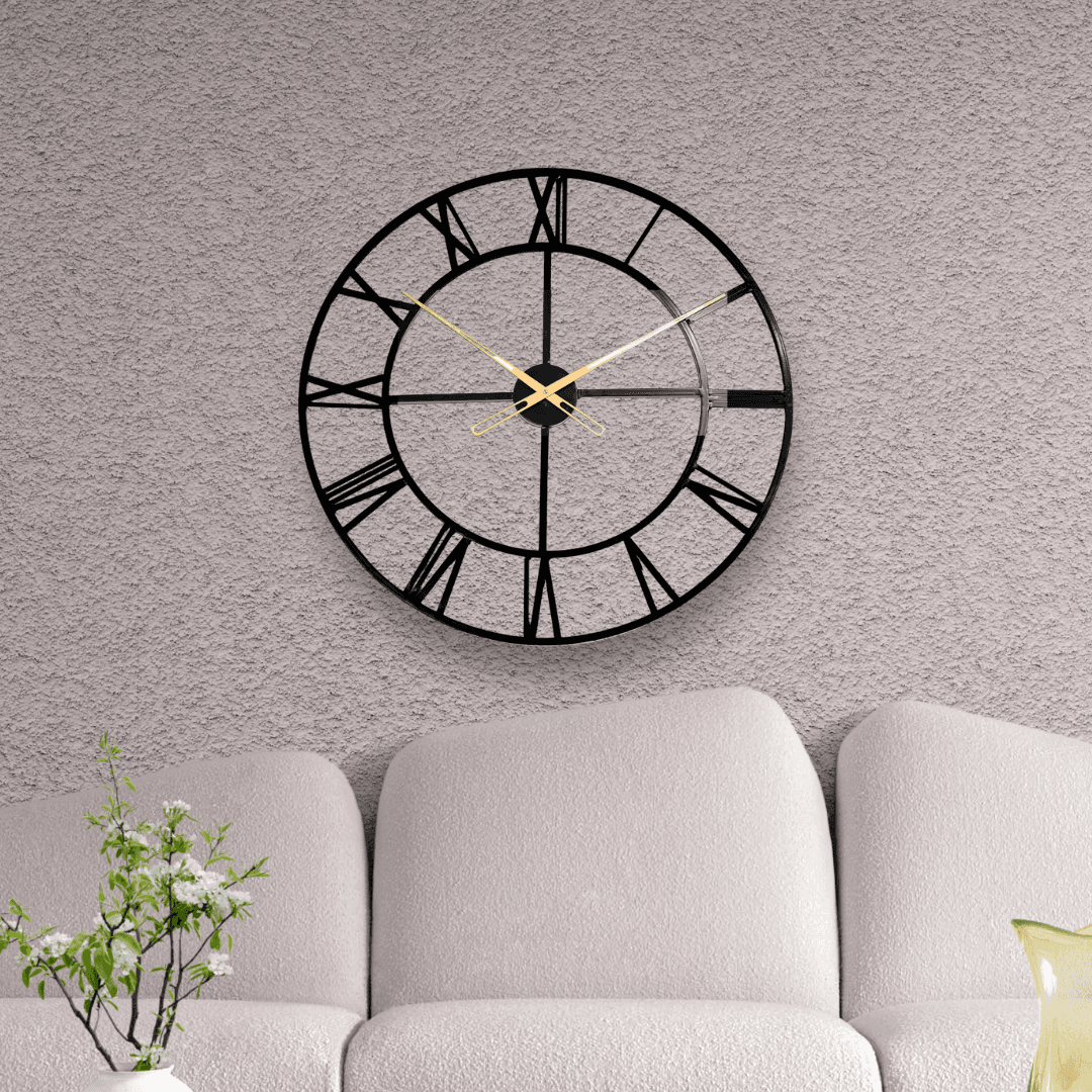 • Vintage Roman Numerals: Elevate your decor with the Wallmora Steel Time Wall Clock, featuring a classic Roman numeral design in a timeless matte black finish. Its bold, easy-to-read numbers make it a perfect fit for both traditional and modern interiors.