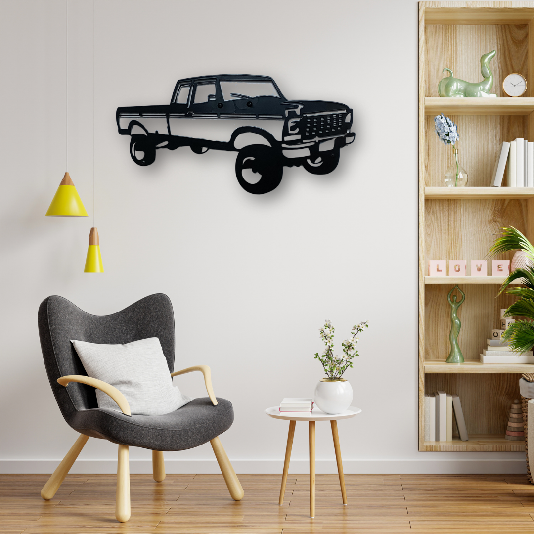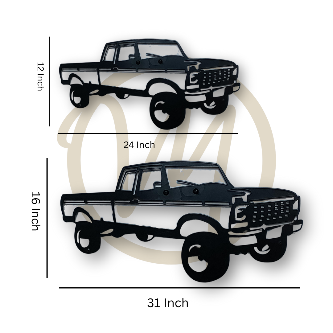 Crafted with precision, this truck wall art displays intricate lines, detailed wheels, and a rustic aesthetic that blends perfectly with both industrial and farmhouse decor. Its bold design makes it a great centerpiece for garages, man caves, or even living rooms with a vintage theme.